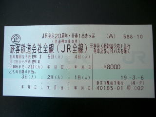 「JR発足20周年・青春18きっぷ」 として発売。