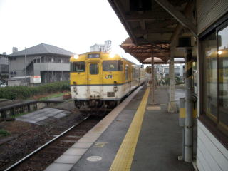 防府駅を出て17分。車窓から「広島カラー」(黄と白のツートン)の気動車やSL山口号の客車が飛び込んできた。