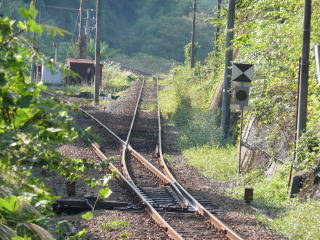 駅構内ではなく、山間部に突然現れる鉄道の分岐点。