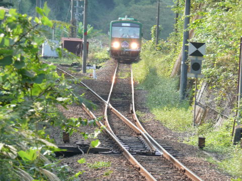 錦川鉄道・錦町発岩国行きの列車がJR線に乗り入れるところです。